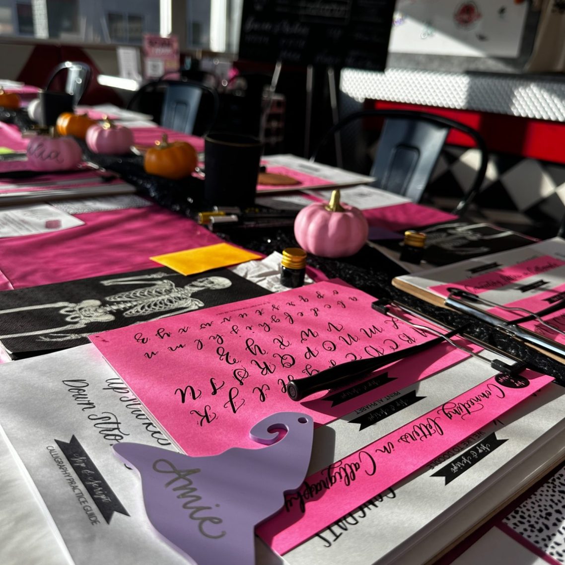 Whether you’re a stationery nerd, DIY Bride-to-be, or just a crafty individual, in this workshop you’ll be learning an introduction to modern calligraphy with a pointed dip pen and ink. We will cover all the basics and get you ready to add those special lettered details to all your spooky spreads – think lettered pumpkins at your front door, on your bar cart, as a Halloween party hostess gift or special occasion gift!